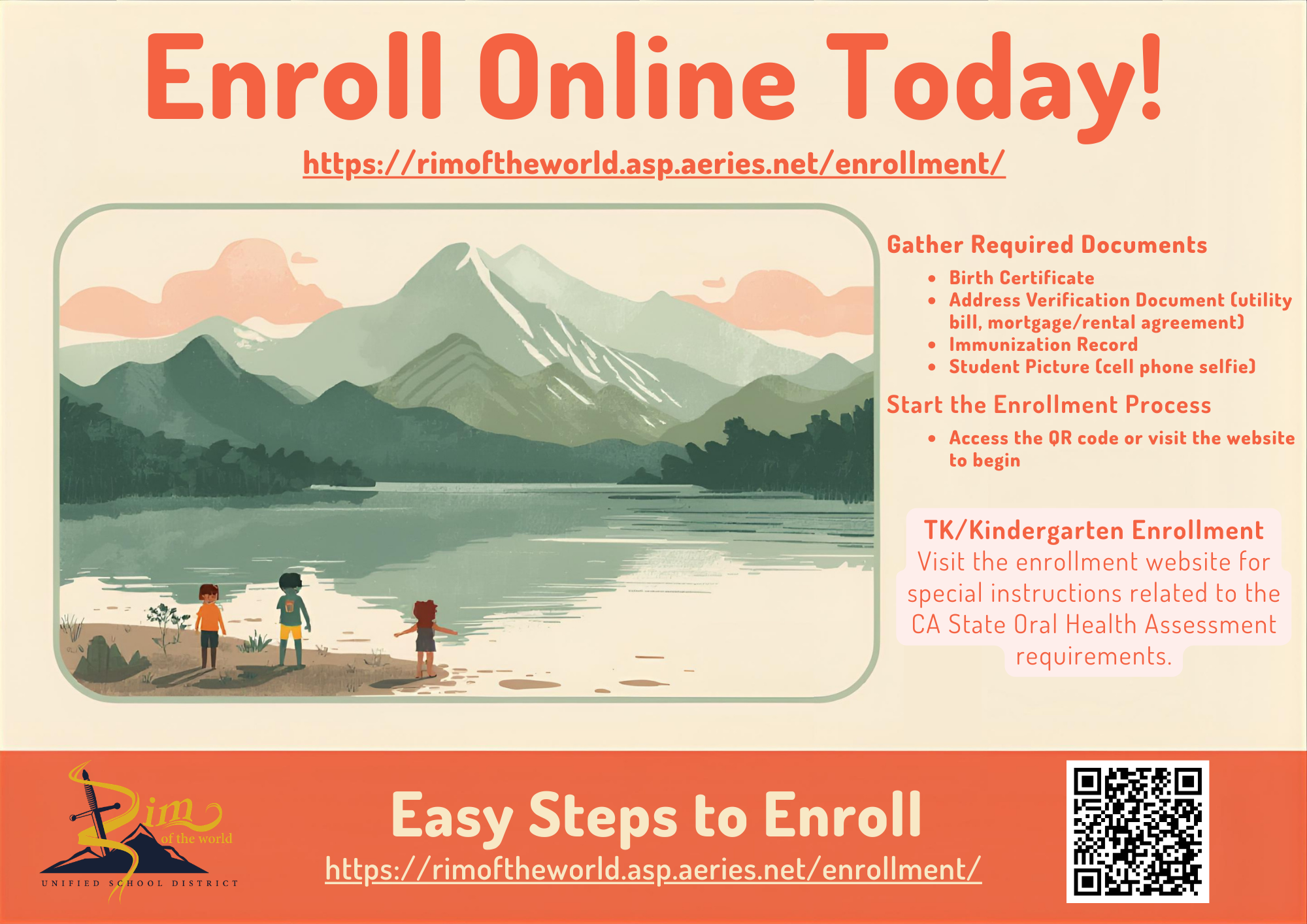 If you have a TK/Kindergarten-age child or know a new family to the area with children, please share the news. It's time to enroll. Students currently enrolled in a Rim of the World School do not n...