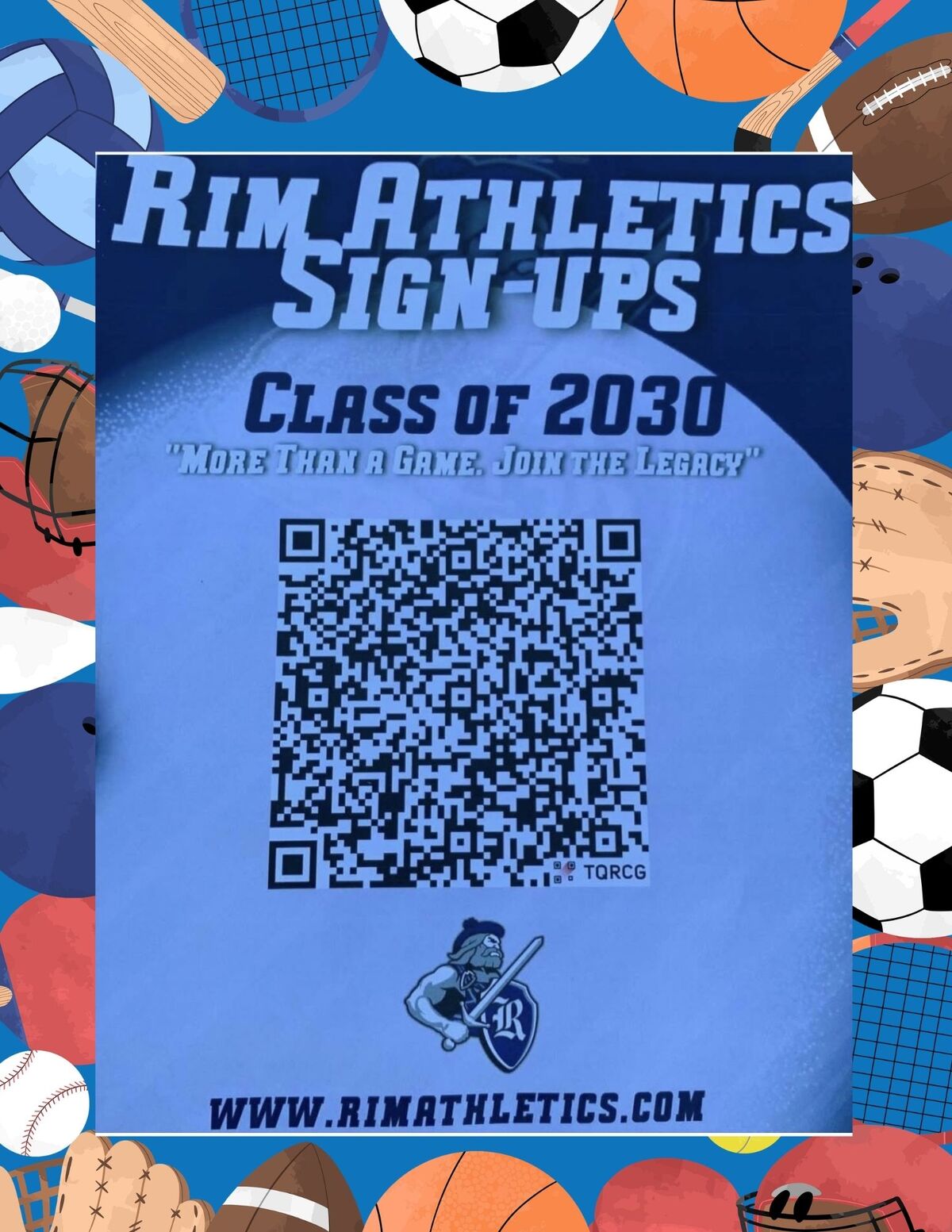 Page: RHS Sports Sign-Up: Rim Athletics Sign-Ups Class of 2030. More than a Game, Join the Legacy! www.rimathletics.com