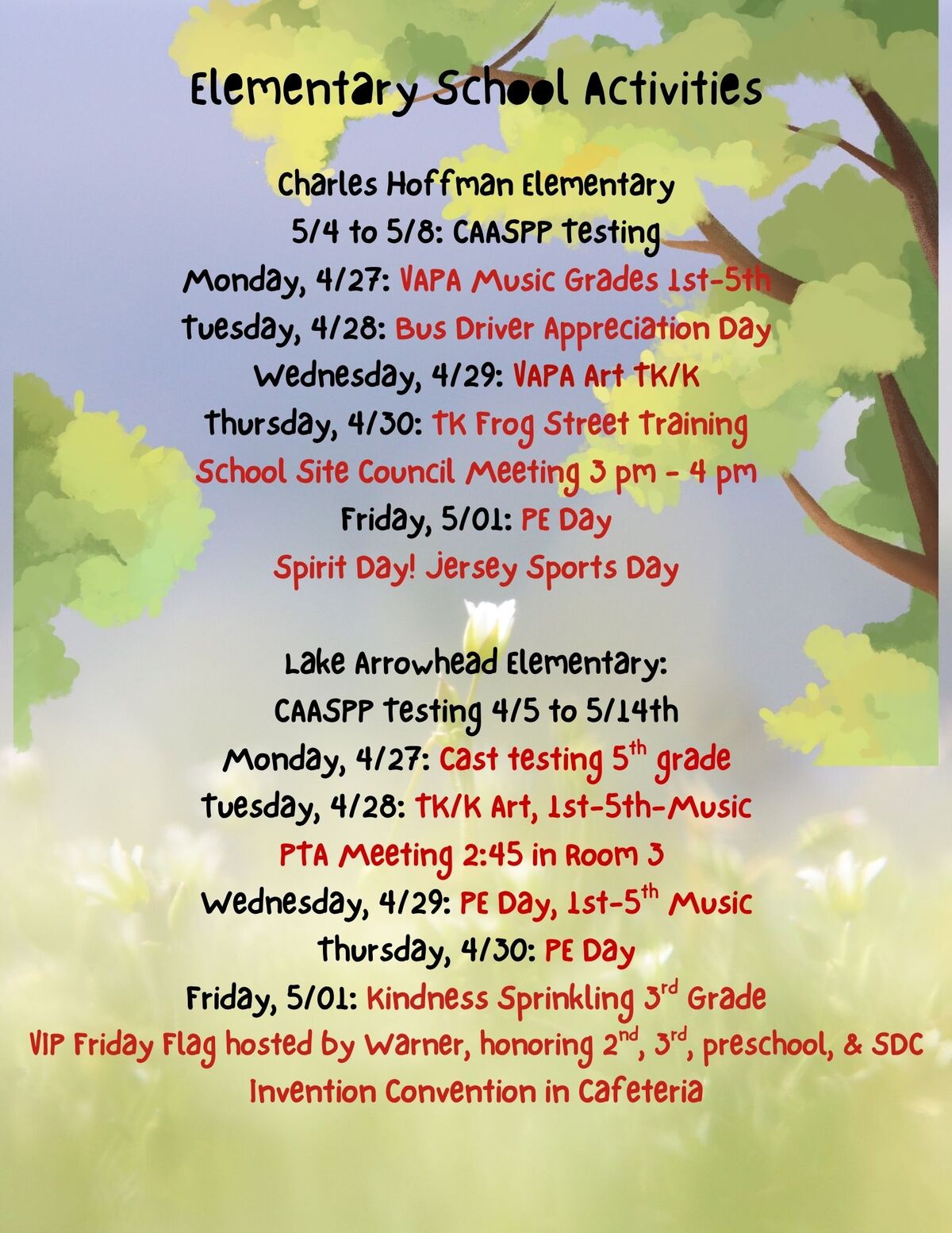 Lake Arrowhead Elementary, May 13th, 2026, at 1:00 pm-2:00 pm