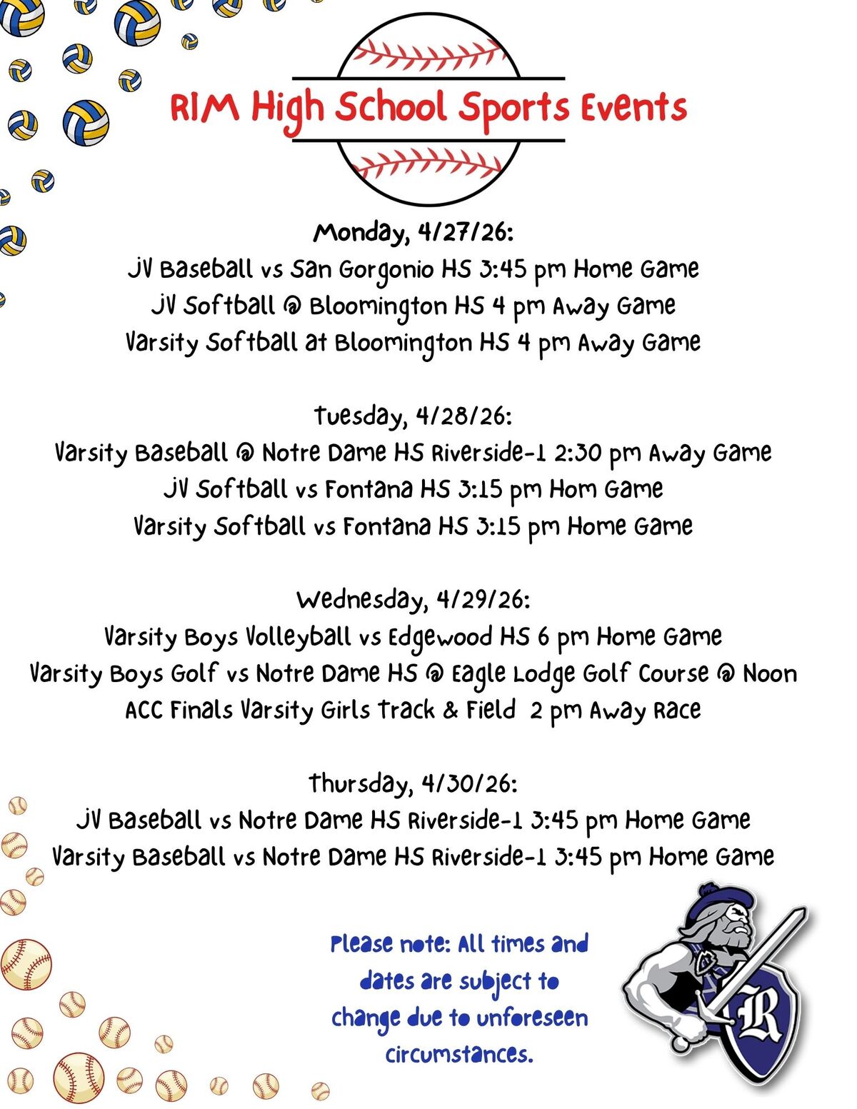 Page: Rim's Edge of Excellence Weekly Kickoff: 4/27 to 5/1/2026: Spring has arrived at ROWUSD, bright and new,